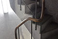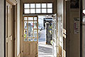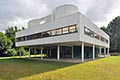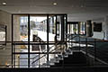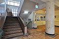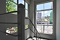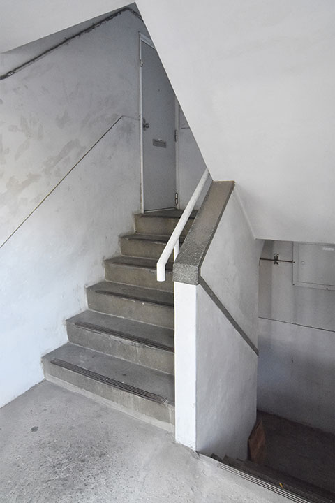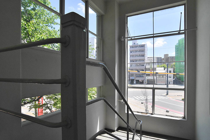 | 建物を見るポイントの一つに窓がある。戦前期の大建築である旧日銀広島支店、福屋、旧産業奨励館(原爆ドーム)の窓は縦に長いが、これらは縦長窓を基調とする西欧の様式の影響だろう。一方、モダニズム建築の旗手である建築家ル・コルビュジェは、技術の発達で横長窓(水平連続窓)が可能になると「サヴォア邸」などで採用し、日本の建築家たちも後に続いた。こうして平和記念資料館や広島県庁など戦後復興期のモダニズム建築は横長の窓を強調している。 では戦前期の建物に横長窓を持つモダニズム建築がないかというと、実はある。現存する中でもっとも分かりやすいのは袋町小学校だろう。校舎の大半は解体されたが一部が平和資料館として保存され見学できる。外観を見ると、他の被爆建物とは異なり、居室の横長の窓と階段室の大きな縦長の窓が印象的で、窓には水平・垂直を強調するリブが入っている。室内もシンプルなつくりだが、階段室での端部を丸める処理などは柔らかい印象を与える。水洗トイレやダストシュートなど設備面も充実していたという。1930年代当時の最先端だったモダニズムを理解したデザインであることは間違いなく、当時の市役所の高い設計能力をうかがわせる。 室内は被爆直後の状況を伝える方針で保存修復され、炭化した木レンガを間近に見られるなど、きれいに修復された他の被爆建物にはない重要な役割を担っている。 |