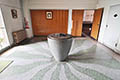 戦後の日本建築は広島から始まった。なにしろ戦後の建物として初めて国の重要文化財になったのは、広島の世界平和記念聖堂(聖堂)と平和記念資料館(資料館)の2作品なのだ。資料館が都市を志向する大建築なのに対し、造形の安定感やじっくり見たくなる細部の魅力という点では聖堂に軍配が上がる。資料館を設計した丹下健三は当初からモダニズム一辺倒だったが、聖堂を手がけた村野藤吾は様式建築を叩き込まれた最後の世代であり、それが両作品の違いにつながっている。 この聖堂は、戦災で失われた旧幟町教会を再建したもので、被爆者でもあるドイツ人神父を中心に全世界からの支援で建立された。外観を見ると、遠景では本堂と塔が並ぶプロポーションの美しさ、近景では現場製作レンガや粗い仕上げの目地がもたらす陰影の豊かさに惹かれる。そこに扉やステンドグラス、パイプオルガン、鐘など各国からの寄贈品が彩りを添え、壁に開けられた窓の形は実に多様で装飾的だ。さらに、外構の太鼓橋、ポーチの格天井や欄間、屋根の鳳凰など、和風を思わせるデザインを探すのも楽しい。 広島を特徴づけるモダニズム建築群の中にあって、近代以前の建築が持っていた装飾性や"手づくり感"を高いレベルで受け継いでいる作品はこれが唯一といっていい。まさに広島を代表する大傑作だ。 【注意】訪問は祈りの場にふさわしい服装で、ミサ等のじゃまにならないよう配慮する。撮影は要許可。 |
