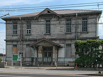 | 広島湾に浮かぶ江田島には、かつて海軍兵学校という士官学校があり、世界にその名を知られていた。現在は自衛隊の学校へと変わったが、赤レンガの校舎はそのまま残され、多くの見学者を集めている。 今回紹介する建物は学校のすぐ脇の小道沿いにある。兵学校に勤める教職員などの福利厚生施設として建てられたもので、遊戯場や浴場を備えていた。外観を見ると、木造2階建てでレンガ基礎、外壁は下見板張りペンキ仕上げ、窓は縦長で上げ下げ式。エントランスには小さなベランダが付いている。典型的な明治後半の洋風建築であり、華美ではないが風格のあるたたずまいだ。戦後は民間企業の事務所として大切に使われていたので保存状態はよく、内部には年季の入ったベッドやビリヤード台まで残っている。江田島の民間施設では指折りの歴史的価値を持つ建築といえるだろう。 さて、現在この建物は空き家になっていて、このままでは解体される可能性もある。そこで地元の有志がこの宝物を受け継ぐための活動を始めていて、まずは小規模なイベントや見学会を行うようなので、もし興味を持たれたらぜひ参加してみてほしい。 ぐるぐる海友舎プロジェクト実行委員会 |
