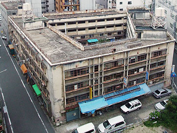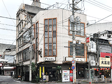| 広島駅前の電車通り沿いにパールという喫茶店がある。広電からよく見えるのでご存知の方も多いだろう。昔ながらの純喫茶というスタイルは、セルフサービス式カフェ全盛の現代では珍しい。 この建物が建ったのは昭和32年。戦災の傷痕を残しつつも、高度成長期に入り徐々に生活に余裕がでてきた時期だ。三階建てでモダンな構えの店はオープンするや大繁盛し、すぐに五階建てが増築された。以来、内外装ともほとんど姿を変えず現在に至っている。 手前の建物はいかにもモダンな横長の窓が特徴で、少し下へ傾斜しているのがおもしろい。内部には大きくカーブする階段があり、室内庭園のある二階へと導かれる。奥の増築部は縦長の窓を持ち、モダンから一転してややコンサバな印象を受けるが、これはこれで魅力的。細部では、窓枠やヒサシ部材などの鉄が良い味をだしている。 町場の商店建築らしいヘタウマな要素を多分に含んでいるものの、時間の経過と共に味わいが増し、言葉では表現しにくい独特の魅力(私はこれを地霊と呼ぶ)が宿っている。残念ながら、まもなく周辺の建物と共に再開発される予定になっているので、もし興味があれば早めに見に行くことをおすすめしたい。 |