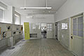 広島の建物を特徴づけているモダニズム建築。その多くは戦後の復興期のものだが、少数ながら戦前に建てられたものもある。その現存する代表例が逓信病院旧外来棟だ。逓信省に属した建築家山田守による設計で、山田が海外視察で本場のモダニズムに触れた直後の作品とされる。文化財ではないが、日本におけるモダン・ムーブメントの建築として専門機関が認定している。 既にオリジナルは半分くらい解体されており、保存され見学できる(※)のはごく一部だが、合理的な諸室配置、装飾のないシンプルな外観、水平連続窓など、モダニズム建築の特徴を備えている。特に手術室の大きな出窓(現代ではありえないが)はデザイン上のアクセントになっている。和風建築が大半だった当時の広島では斬新でモダンな印象を与える建物だったことだろう。 こういったシンプルなモダニズム建築は、現代の私たちから見ると「ただのビル」に見えるかもしれない。だが、よくよく見てみると、角を丸めて柔らかさを表現する、窓枠を極細にして開口部のシンプルさを追求するなど、ただのビルより手の込んだ「作品」であると気づく。病室の窓が上げ下げ式なのも現代とは違う特徴だ。さらに窓枠(一部)や室内のタイルなどのディテールが残っている被爆建物という点でも貴重で、小さいながらもじっくり鑑賞したくなる建物といえる。 【注意】見学する際には、病院が開いている時間帯に受付に申し出ること。 |