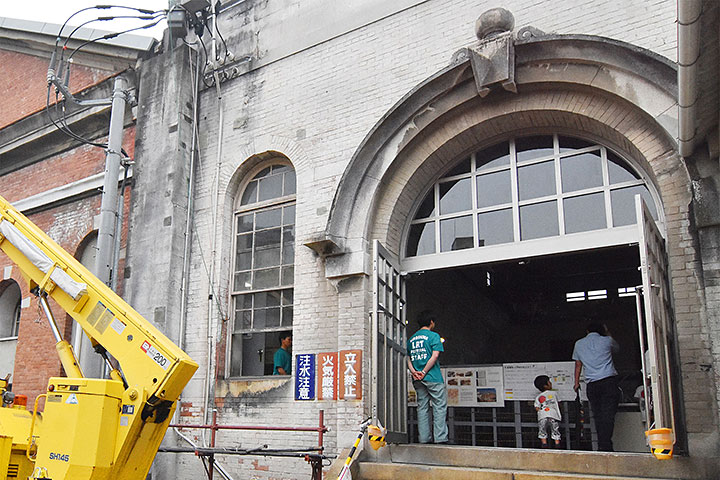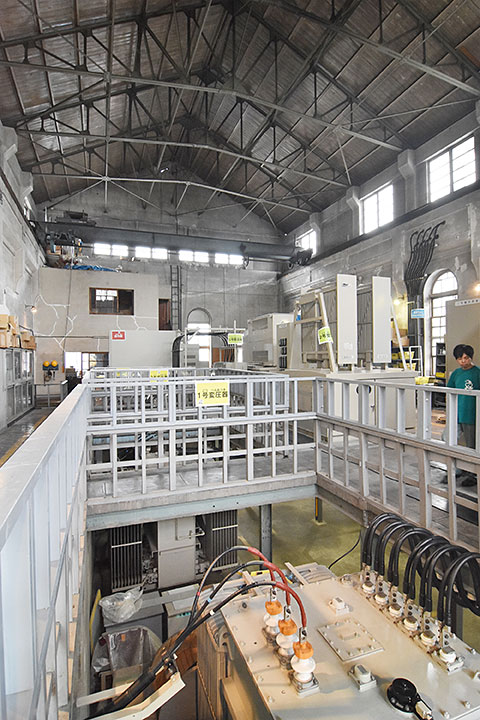 レンガ造の建物はいかにも歴史がありそうに見える。日本では1923年の関東大震災以降はレンガが使われなくなったから、現存するレンガ造建築は震災前のものといえる。そして広島の中心部で唯一となったレンガ造建築がこの変電所だ。普段は非公開だが路面電車祭りの際には内観できる。 この建物は路面電車用の発電所として建てられたもので、南が事務所棟(旧ボイラー室)で北が変電所棟(旧発電機室)。目前にはかつて平田屋川という運河があり、燃料を船で運んでいた。被爆時には室内を焼失したが倒壊は免れ、応急措置を受けて再稼働した。1958年には損傷したレンガ壁をコンクリート壁に変えるなどの補修工事を受けている。 事務所棟はレンガらしい外観が残るが室内に昔のものは少ない。レンガはイギリス積みで、窓まわりは石造、コーニスは人造石のようだ。変電所棟は改修工事で外観が変化したが、入口は大アーチに擬宝珠が付くなど装飾性が高く、今なお電気設備があるために半地下の構造が残り、見上げれば小屋組の鉄トラスも見える。床に使われている石材も当時のものなのか、味わいがあって印象的だった。 前述のとおり、この建物はとても貴重なレンガ造建築なのだが、文化財指定などの保護や支援を受けていない。広島の発展や復興を支えた路面電車の歴史を語るシンボルでもあり、行政や市民が支えてでも次世代に受け継ぐべき価値のある建物ではないだろうか。 |
