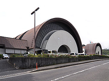 | いったいこの形をどう表現したらいいのだろう。巨大な円筒は某アニメに出てくるスペースコロニーを思わせるし、凹凸の具合はジェットエンジンのカウルのようにも見える。 この建物は広島市のスポーツ施設で、体育館とプールからなる。ガラス張りのプールの屋根はなんと可動式で、屋外プールにもできるよう設計されていた。バブリーだ、税金のムダだと騒ぐのは簡単だけど、たまにはこんな夢のある建築があってもいい。 円筒を半分に切った、蒲鉾のような形を建築の世界ではヴォールトという。力学的に安定したアーチをズラッと並べたのがヴォールトであり、単純な構造で大空間にできる利点がある。(ちなみにアーチをくるっと回転させたらドームになる) 建物全体をヴォールトにするという大胆な選択をしている一方、屋根をよく見るといくつか節目があり窓があけられているのに気付く。採光のためでもあるが、大ざっぱで野暮なデザインに陥らないよう工夫した跡だろう。 ヴォールトというシンプルな形を選びつつも、その造形を突き詰めることで、緊張感のある建築作品に仕上がっている。室内がいかにも公共施設っぽいのは残念だが、もしこの形にグッときたらぜひ見に行ってみてほしい。 |