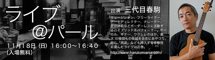 | 公開イベント内でミニライブを行います。建物が華やいでいた昭和の歌謡曲を中心に、間もなく閉店となるパールを彩ります。16時以降はワイン(有料)もご用意します。 |