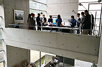 ●比治山本町のアトリエ 11月13日(日) 14:30〜15:20、15:40〜16:30 建築家 村上徹氏のアトリエは比治山の麓に、わずかな高低差を活かす形で建てられています。コンクリート打ち放しのシンプルな空間やシャープな造形の階段などを、ご本人による解説を聞きながら、じっくりと見学しました。 |