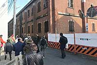 建物見学会 1月11・12・13日の3日間で6回の建物見学会を行いました。敷地内は立入禁止となっていたため、道路側の外観を見るのみとなりましたが、合計340名にご参加いただきました。 |