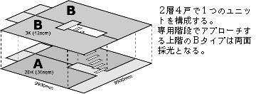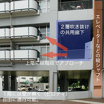 ![]() 基町高層アパートのピロティ ![]() ユニットの概念図 |